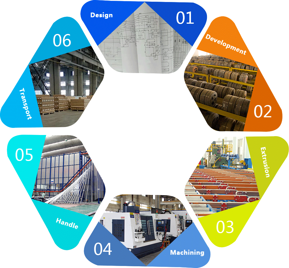 Nuoheng is an aluminum manufacturer engaged in extrusion, surface treatment and deep processing of industrial aluminum profiles. Main production and sales: LED lamp profiles, motor shell, electronic radiator, industrial automation assembly line profiles, solar frame and bracket, architectural decoration, rail transit, medical devices, power and electrical systems, home appliance industry and special industrial aluminum profiles. Surface treatment: powder spraying, fluorocarbon spraying, wood grain transfer printing, 3D wood grain, 4D antique wood grain, 5D decay resistant wood grain, large oxidation and small oxidation (silver, bronze, champagne, red copper, bronze, gold, black oxidation; acid sand, frosting, sandblasting oxidation, polishing, wire drawing, bright oxidation). Finish machining: finish cutting, drilling, punching, milling, bending, welding, CNC, riveting, bending and other processes.